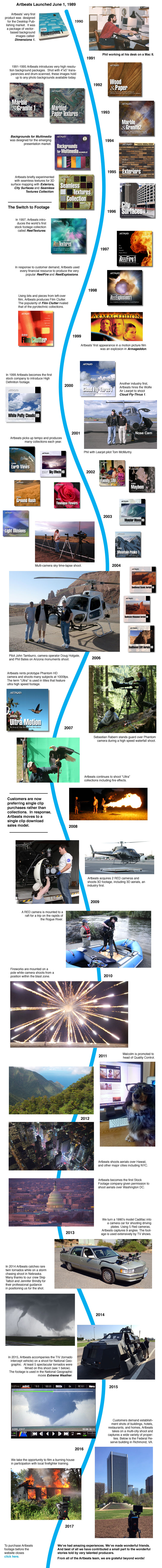 Artbeats, Inc., una pequeña empresa nacida en San Bernardino, California, fue la primera en introducir Stock Footage al mundo cuando lanzaron una colección de animaciones de fondo llamada ReelTextures en 1997.